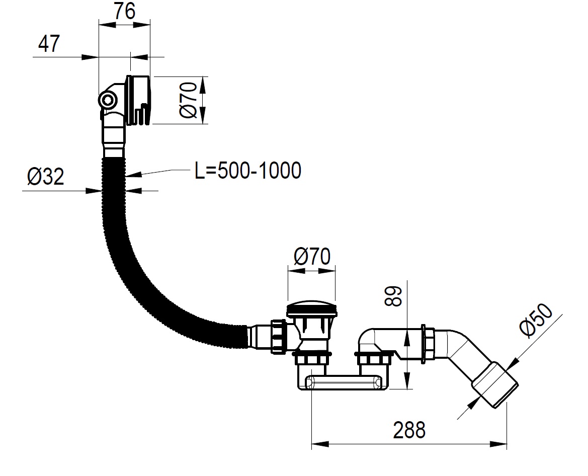 Слив-перелив для ванной, функция наполнения black